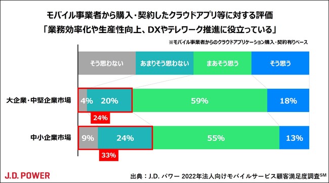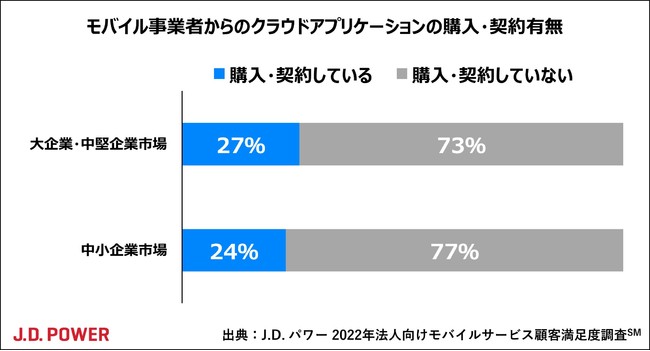 モバイル事業者からのクラウドアプリ導入は3割未満も、満足度向上に寄与【J.D. パワー 2022年法人向けモバイルサービス顧客満足度調査(SM)】