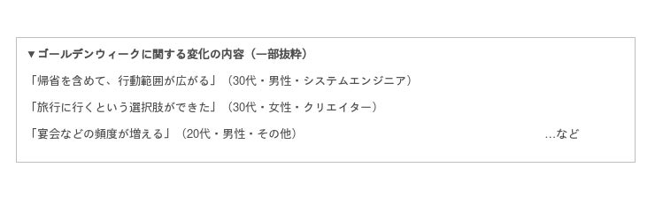 【GWの過ごし方の変化】67.8%が変化なし 一方で「出かけやすくなった」の声も 規制緩和の影響か