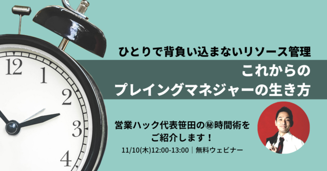 社長×マネジャー×プレイヤー×家事育児を実現させている営業ハック笹田の時間術を大公開!これからのプレイングマネジャーの生き方|11/10(木)12:00〜無料ウェビナー