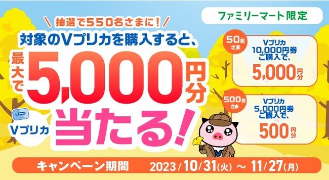 ・5,000円券購入で、抽選で500名さまにVプリカ500円分が当たる!