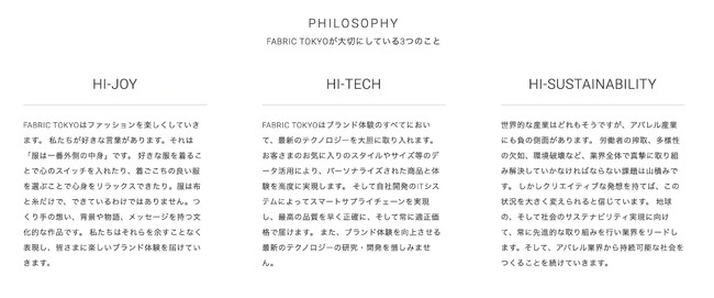 ※ PHILOSOPHY FABRIC TOKYOが大切にしている3つのこと