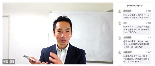 この後から、明日からの架電において意識して実行することを1人2点ずつチャットに書き込み宣言をして、研修は終了しました。