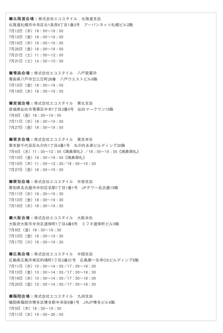 太陽光発電事業を中核とした再生可能エネルギーの普及促進を展開している株式会社エコスタイル(代表取締役社長:木下公貴、本社:東京都千代田区)は、「土地付き太陽光投資物件説明会」を北海道、青森、宮城、東京、愛知、大阪、広島、福岡の全国8会場で開催いたします。また、7月より北海道、東北、中四国エリアにお住まいのお客様はオンラインでの個別説明会もスタートし、さらに参加いただきやすくなりました。