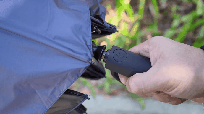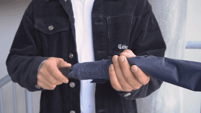 本製品では、従来よりも太めの巻き取りベルトを採用。これにより、傘布を簡単かつしっかりと巻き取り、コンパクトにまとめることができます。