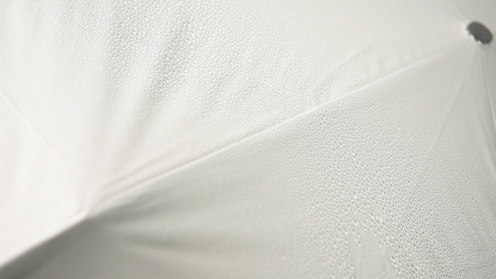 また、280Tの高密度ポリエステル素材にテフロン加工を施しているため、水滴が生地表面を滑り落ち、傘がすばやく乾く効果も期待できます。