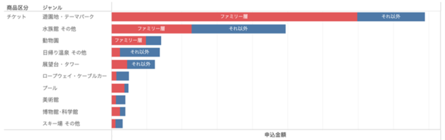 チケット型観光レジャー施設部門は、上位5位までは昨年とランキングの変動なく、「遊園地・テーマパーク」が第1位となりました。2位となった「水族館・その他」の2倍ほど多く、遊びの機会を創出しました。なかでも「遊園地・テーマパーク」の人気はファミリー層が押し上げており、利用者全体の約6割を子連れファミリーが占めています。
