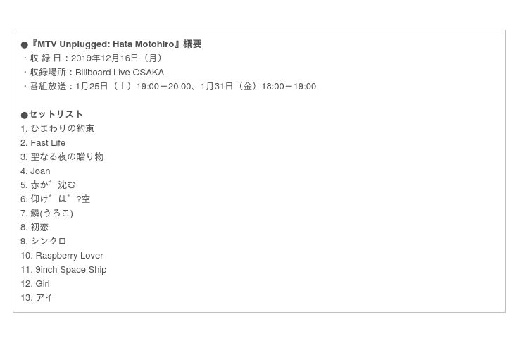 詳細:http://www.mtvjapan.com/event/unplugged/hata-motohiro