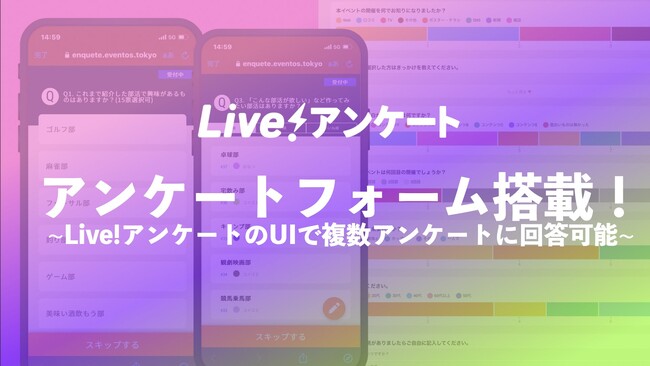 イベントを盛り上げるリアルタイムアンケート「Live!アンケート」が、待望のアンケートフォーム機能をリリース!UIそのままで複数アンケートに回答可能!