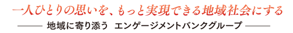 当行グループは、「一人ひとりの思いを、もっと実現できる地域社会にする」をパーパスに掲げ、地域の社会的課題解決に貢献するなど社会的価値を提供し、地域に寄り添うエンゲージメントバンクグループを目指します。