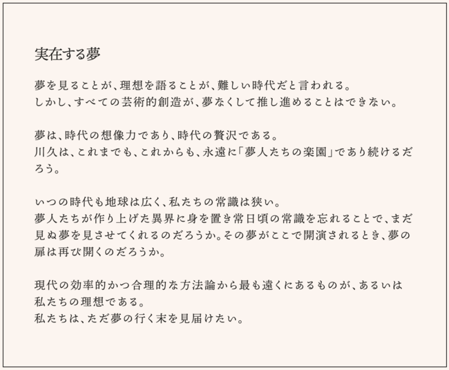 KAWAKYU ART Exhibition 2022に展示されているアーティストの作品に寄り添う形で、南紀白浜や展示テーマ「実在する夢」に合わせた演目を特別ステージとして披露いたします。