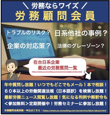 台湾最新の労務情報をお届けします<ワイズコンサルティング@台湾>