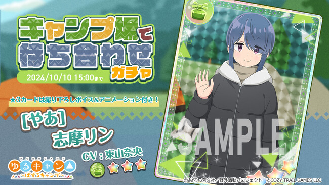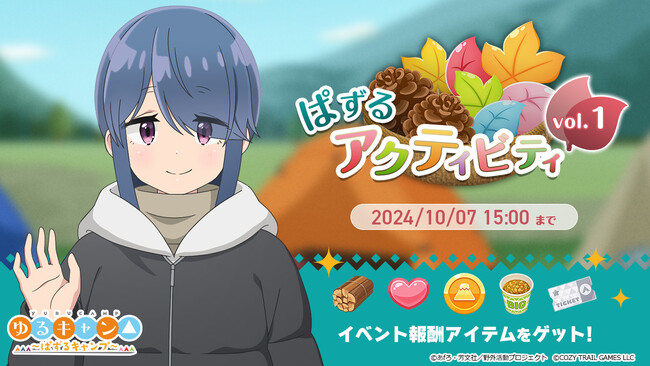 ポッピンゲームズジャパン株式会社(本社:東京都港区、代表取締役 CEO:谷口祐一郎)と合同会社CozyTrailGamesは、TVアニメーション『ゆるキャン△ SEASON3』のスマートフォン向けパズルゲーム『ゆるキャン△ 〜ぱずるキャンプ〜』(略称:『ぱずキャン△』)は、本日9月26日(木)より★3の新カード「[やあ]志摩リン」が登場する期間限定ピックアップガチャ「キャンプ場で待ち合わせ」を開催いたします。