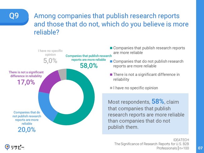 IDEATECH、米国BtoB企業における「調査レポート」に関する実態調査を実施!企業の信頼性にも繋がる「調査レポート」の重要性が明らかに