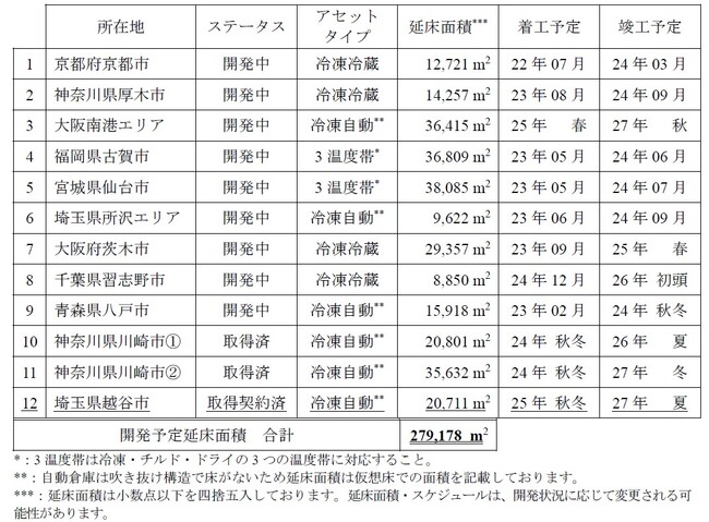 ■霞ヶ関キャピタル物流施設開発予定物件一覧