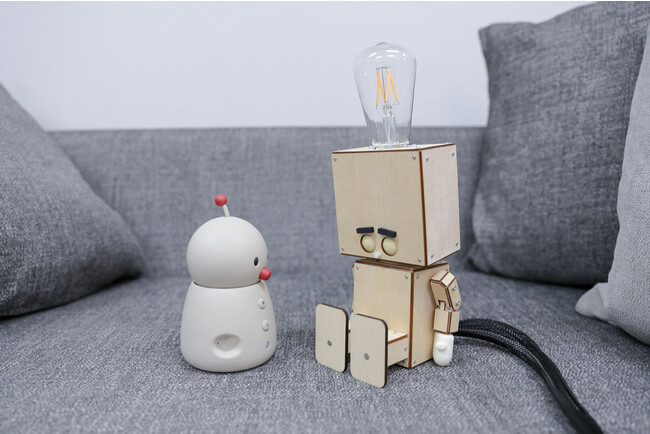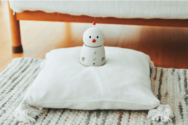 電気をつけっぱなしにして眠ってしまったとき、気づくと一緒に眠っている、そんなかわいい表情でやさしく寄り添い、暮らしやインテリアに溶け込むパートナーロボットです。