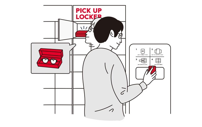 「PICK UP LOCKER」は、店舗スタッフを介さずに完成したメガネをお客様の好きなタイミングで受け取るこ