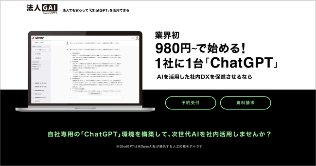 法人GAIは、ChatGPTを活用した法人向けプラットフォームです。従業員は「法人GAI」にログインすることで、自社専用環境で「ChatGPT」を利用することができます。