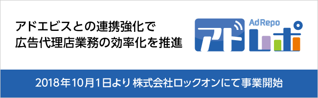 株式会社ロックオン(本社:大阪府大阪市北区 代表取締役:岩田 進)は、株式会社EVERRISEの運用型広告レポート自動作成ツール「アドレポ」事業を承継し、2018年10月1日(月)付で事業を開始しましたので、お知らせいたします。