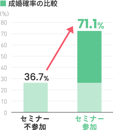 セミナーに参加した方は不参加の方に比べ、成婚確率が34.4%UP!