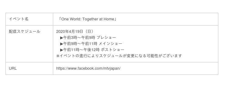 世界の医療従事者を支援するチャリティ・イベント「One World: Together at Home」急遽、MTV公式Facebookで生配信が決定!〜4月19日(日)3時より〜
