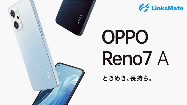 「OPPO Reno7 A」をMVNOサービス「LinksMate(リンクスメイト)」にて、2022年6月23日(木)より販売開始
