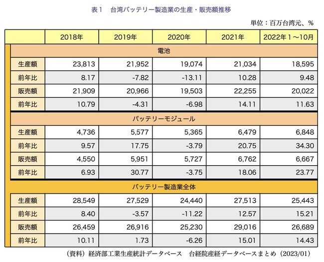 <台湾バッテリー製造業の概況と2023年の展望>