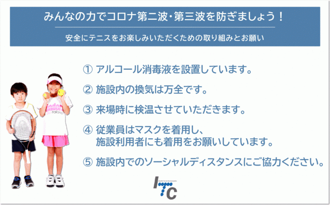 ITCテニススクールの【感染予防】安心・安全の心得は、ホームページからもご確認いただけます。
