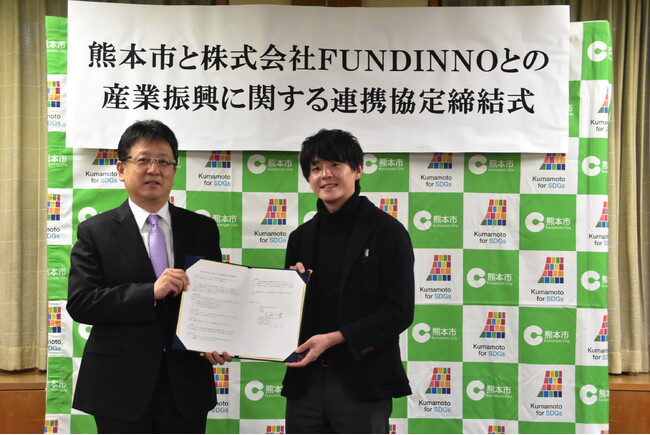 株式会社FUNDINNO(本社:東京都品川区、代表:柴原 祐喜/大浦 学、以下「FUNDINNO」)は、この度、熊本市と産業振興に関する連携協定を締結いたしました。