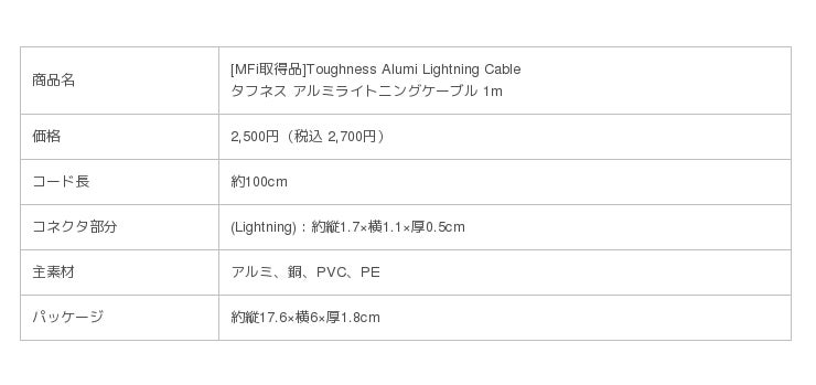 [MFi取得品]Toughness Alumi Lightning Cable タフネス アルミライトニングケーブル 1m