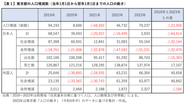 東京の人口は日本人・外国人ともに社会増、コロナ禍前を上回る水準に