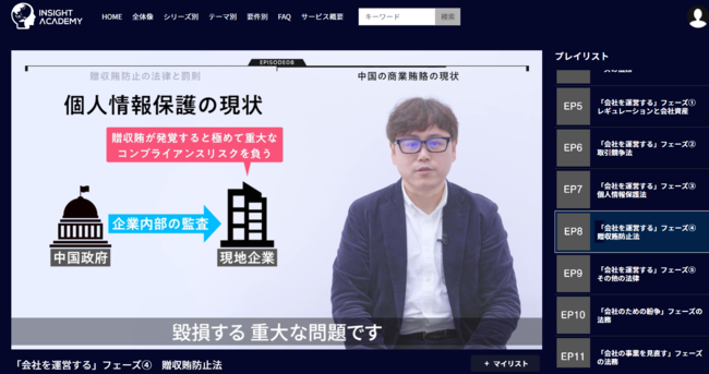 【海外コンプライアンス】国別ビジネス法務「中国編」リリース〜グローバル人材育成特化型eラーニングINSIGHT ACADEMY〜