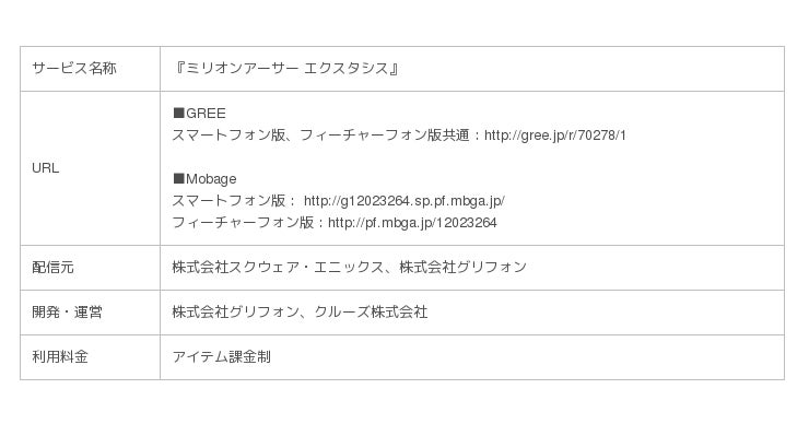 クルーズ株式会社(本社:東京都港区、代表取締役社長:小渕 宏二)は、共同運営を行っている株式会社グリフォン(本社:東京都渋谷区、代表取締役社長:山本 太郎)と株式会社スクウェア・エニックス(本社:東京都新宿区、代表取締役社長:松田 洋祐)との協業タイトル『ミリオンアーサー エクスタシス』を、株式会社NTTドコモ(本社:東京都千代田区、代表取締役社長:加藤 ?)が運営する「dゲーム」にて提供することを決定し、それに先駆け事前登録を開始しました。