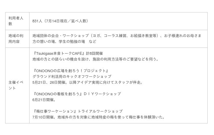 【参考】月ヶ瀬ワーケーションルーム「ONOONO」施設運営実績