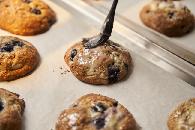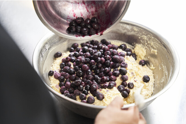 一般的に知られている筒型の「イングリッシュスコーン」とは違って、クリームチーズをたっぷり入れた生地にフルーツなどの具材を混ぜ込んだ、ハワイで人気のスコーンです。