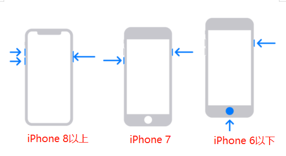 iPhoneをiTunes接続した状態で、デバイスのモテルによって以下の手順を操作してください。