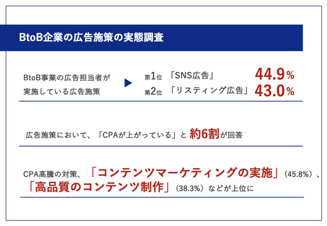 今回は、BtoB事業の広告担当者107名を対象に、BtoB企業の広告施策の実態調査を実施しました。