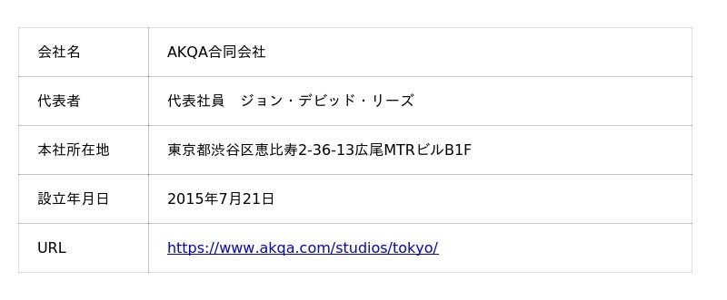 AKQA社は、世界19ヵ国に30拠点を持ち、各業界のトップ企業に対してデジタルとデザインを活用したCXの変革を支援する、世界最高水準の評価を受けるデジタルエージェンシーです。近年は、生成AIなどの先端テクノロジーを積極的に取り込み、自社サービスの高度化に加え、クライアント企業の顧客体験変革に向けたテクノロジー導入支援も強化しています。AKQA Tokyoは、Nikeをはじめとするグローバルブランドのブランド戦略やコミュニケーション領域を担っています。