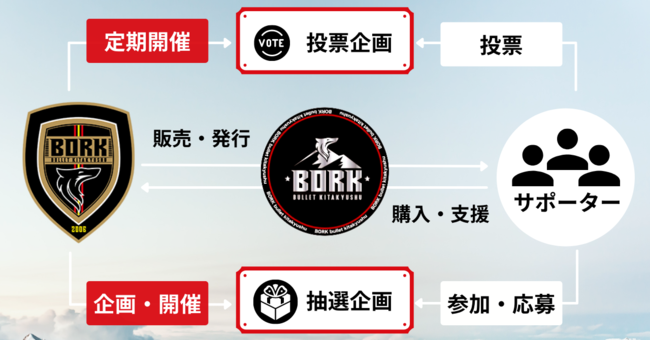 ボルクバレット北九州トークンはクラブへの応援の「しるし」や「証」の役割を果たし、また単に支援の証になるだけでなく、保有することでクラブ発の投票企画への参加や、トークン保有者限定の特典への応募ができるなど、新しい体験ができるデジタル上のアイテムです。