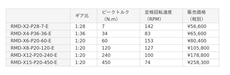 当社ではロボット向けに開発されたプラネタリギア採用のRMD-Xシリーズを2023年より販売しており、今回のRMD-X V4シリーズはその最新版。デュアルエンコーダーを搭載し、制御位置の向上、電源停止時の位置喪失を防止を実現しています。通信方式は、CAN BUSとEtherCATに対応しています。本体モデルにより異なる6種の取り扱いを開始します。<特徴>プラネタリギア/デュアルエンコーダー/CAN BUS and EtherCAT/中空設計(X6以上)
