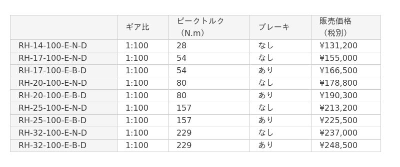 - RHシリーズ(汎用モデル)RHシリーズは、波動歯車装置、デュアルエンコーダーを採用、CAN BUSとEtherCATに対応しています。波動歯車装置の性質上、より精密な制御に向いています。波動歯車装置のモデル、ブレーキの有無により異なる9種類の取り扱いを開始します。<特徴>波動歯車装置/デュアルエンコーダー/CAN BUS and EtherCAT/中空設計