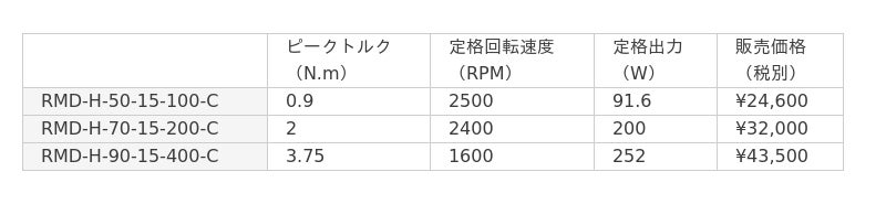 RMD-Hシリーズは、中空ダイレクトドライブを採用、外部ローターを搭載しています。繰り返し精度0.01度以下で、高速回転が可能です。通信方法はCAN BUSで、モーターのモデルにより異なる3種類の取り扱いを開始します。
