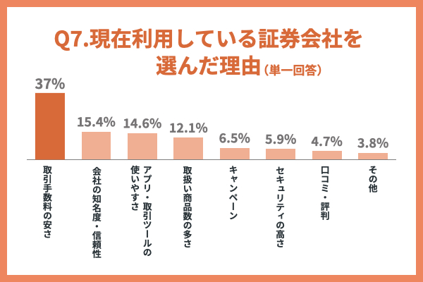 【質問7】現在利用している証券会社を選んだ理由のうち最もあてはまるものを選んで下さい。(単一回答)