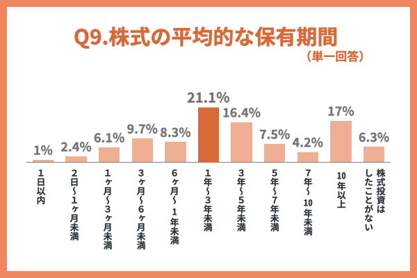 【質問9】株式の平均的な保有期間はどのくらいですか?(単一回答)