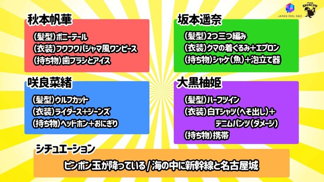 ファンからアイデアを募集し、TEAM SHACHIによる選定の上、最終的にMVに反映するアイデアは以下で決定!