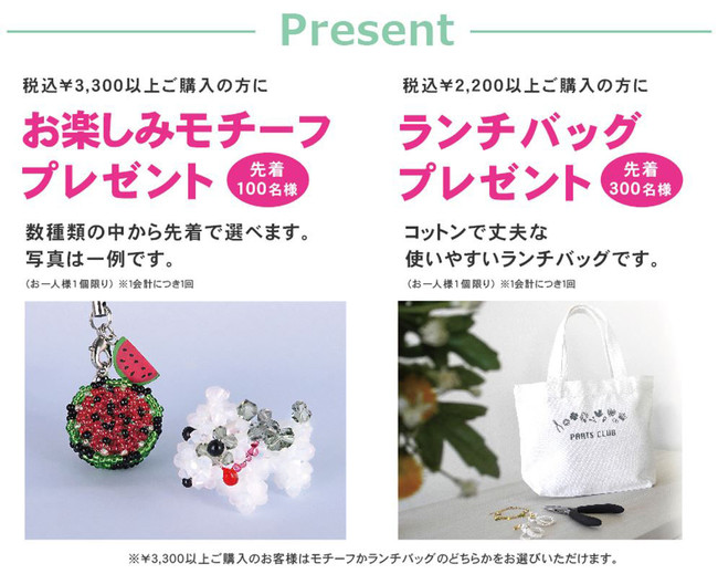 ※¥3,300以上ご購入のお客様は、モチーフかランチバッグのどちらかをお選びいただけます