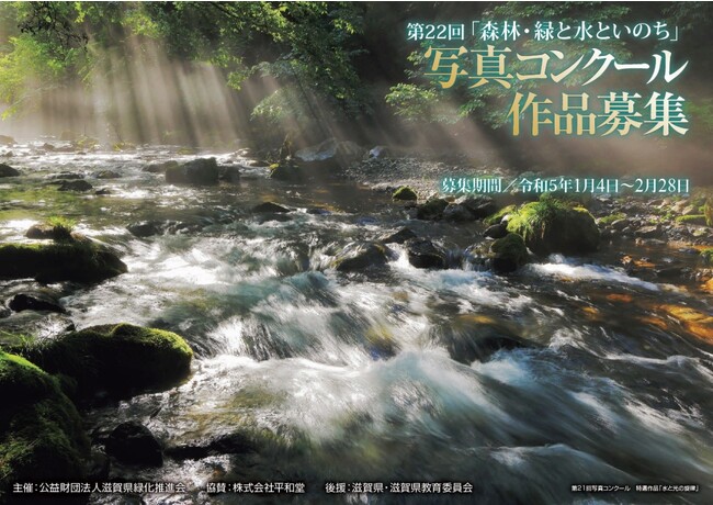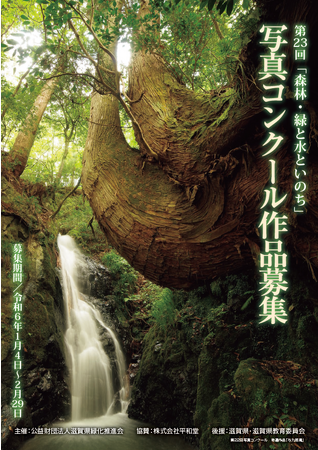 公益財団法人滋賀県緑化推進会は、「緑豊かな湖国づくり」を進めるために、「緑の募金」へのご協力をお願いしておりますが、このたび環境保全活動に積極的に取り組まれている(株)平和堂の協力を得て、募金活動の啓発を目的に「森林・緑と水といのち」を基本テーマとした写真コンクールを実施します。