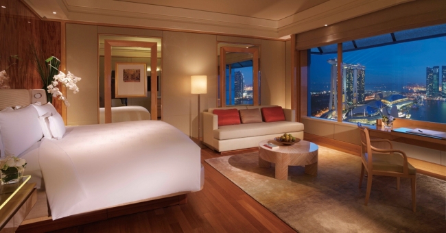 ●洗練された上質のおもてなしで人気の「ザ・リッツ・カールトン ミレニア シンガポール」では、豪華な大理石のバスルームから美しい夜景を望める「デラックス・ルーム・マリーナ・ベイ・ビュー」に宿泊。ホテル内レストランなどでご利用可能な150シンガポールドル分のルームクレジット付きです。さらに滞在中はホテル内クラブラウンジをご利用いただけます。