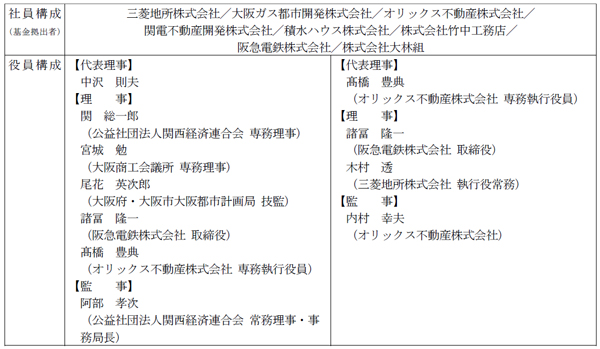 (大阪府、大阪市、公益社団法人関西経済連合会、大阪商工会議所、独立行政法人都市再生機構、一般財団法人大阪科学技術センター)