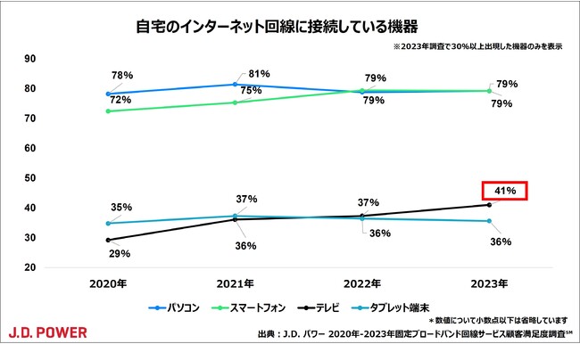 テレビでの動画・映像配信サービスの利用者が増加傾向、通信品質の向上が顧客満足度のカギ【J.D. パワー 2023年固定ブロードバンド回線サービス顧客満足度調査(SM)】