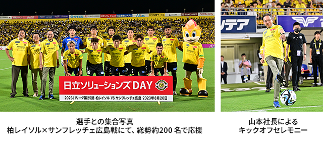 株式会社日立ソリューションズ(本社:東京都品川区、取締役社長:山本 二雄/以下、日立ソリューションズ)は、スポンサー契約を結ぶプロサッカークラブ・柏レイソルの本拠地である三協フロンテア柏スタジアムで、日立ソリューションズ初の冠試合となる「日立ソリューションズDAY」を8月26日に開催しました。